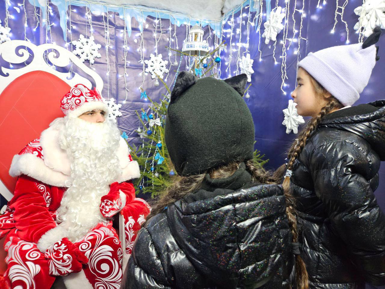 В своей резиденции возле главной елки прием детворы открыл Глава сказочного сообщества – Дед Мороз, помогает ему в этом внучка Снегурочка. В сказочном ведомстве мальчишки и девчонки могут передать Деду Морозу свои письма с пожеланиями, прочитать стихи, спеть песню, исполнить танец и получить новогодний подарок, а также сделать фото на память о встрече с главным зимним волшебником.