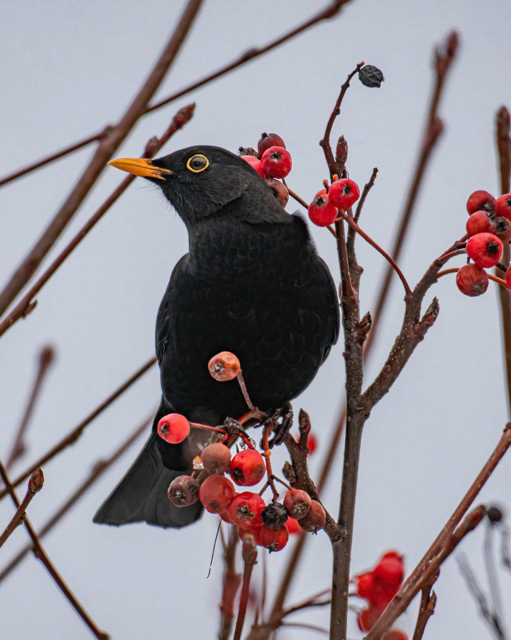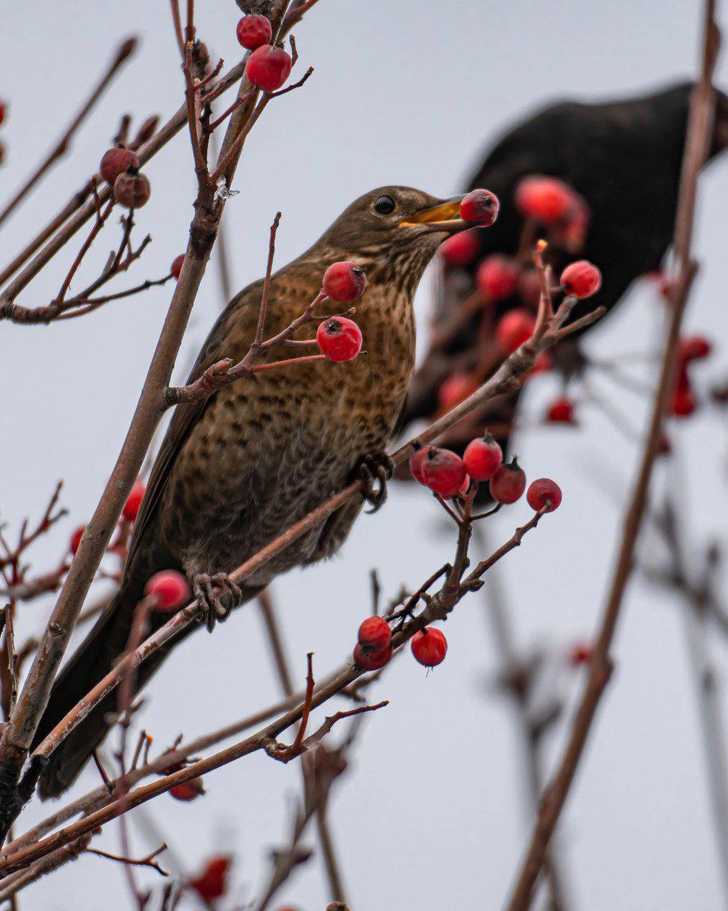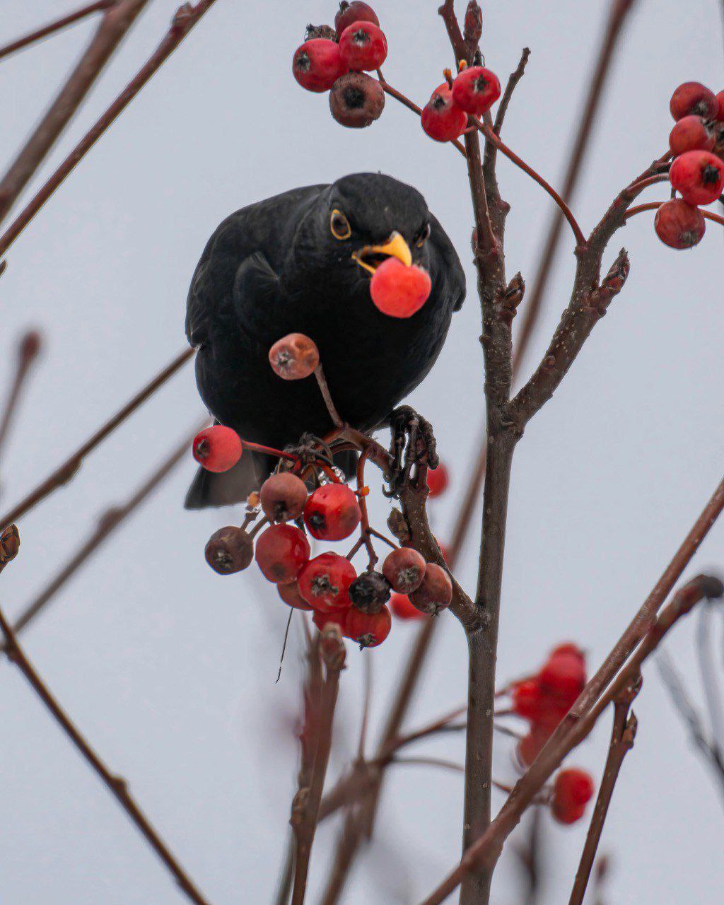 Решили чёрные дрозды в Ставрополе и с жадностью набросились на рябину и яблоки. Вероятно, к прилёту свиристелей ягод на деревьях не останется.