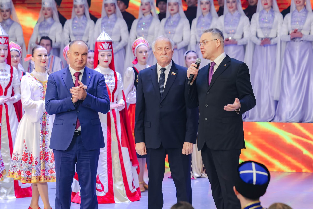 На сцене выступали вокальные и танцевальные ансамбли, чтецы и музыканты. В зале собрались почетные гости, выпускники разных лет, партнеры и друзья вуза со всего региона и страны.