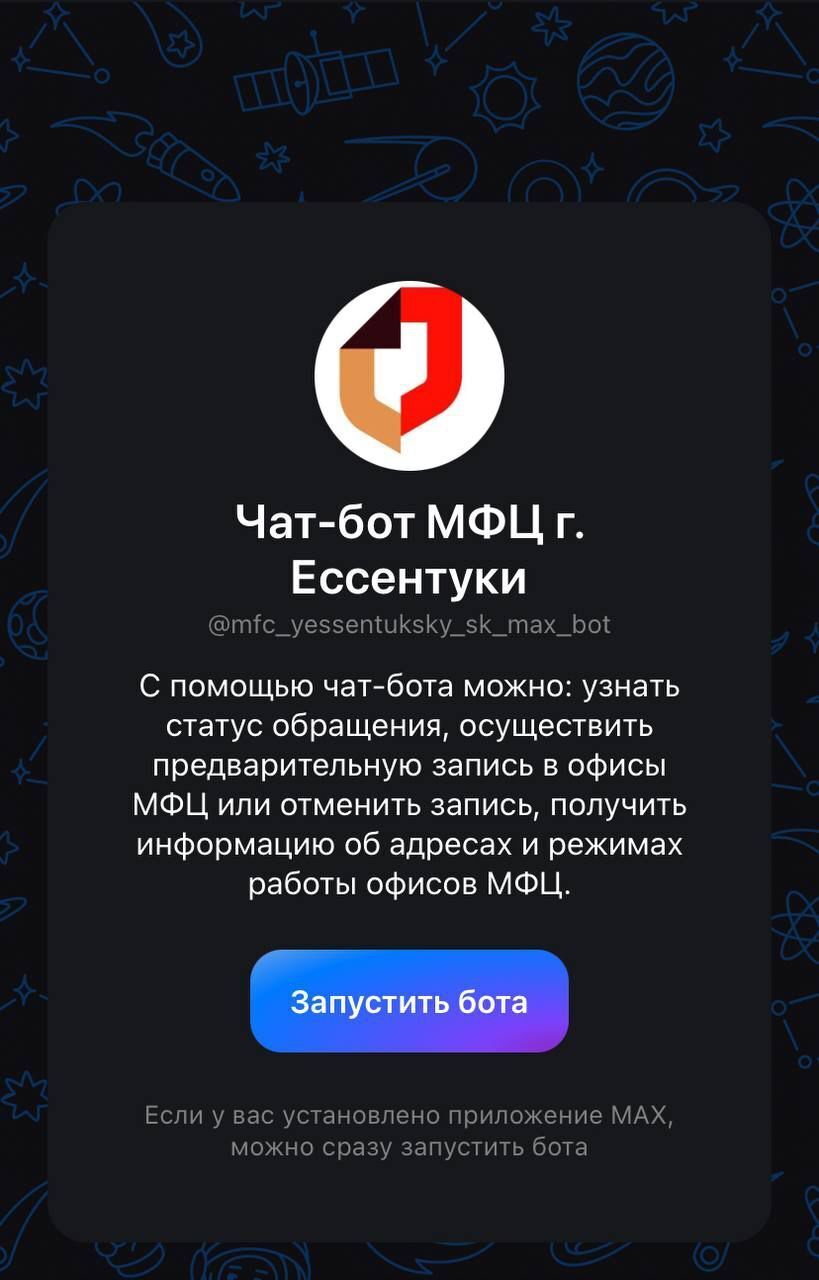 или наберите в поиске MAX «ЧатБот МФЦ г.Ессентуки».
