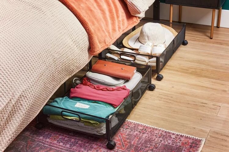 Следующий этап — подготовить контейнеры для хранения. Если в квартире нет отдельной кладовой, подойдут пластиковые контейнеры, которые можно разместить, например, под кроватью. Проверка ящиков в шкафах также может выявить ненужные вещи, которые давно теряли актуальность. Все емкости должны быть сухими и чистыми, так как картонные коробки могут привлекать моль, а в пластиковых контейнерах с высокой влажностью может образоваться плесень. Если у вас остались пустые чемоданы от отпуска — не упустите шанс использовать их для хранения.