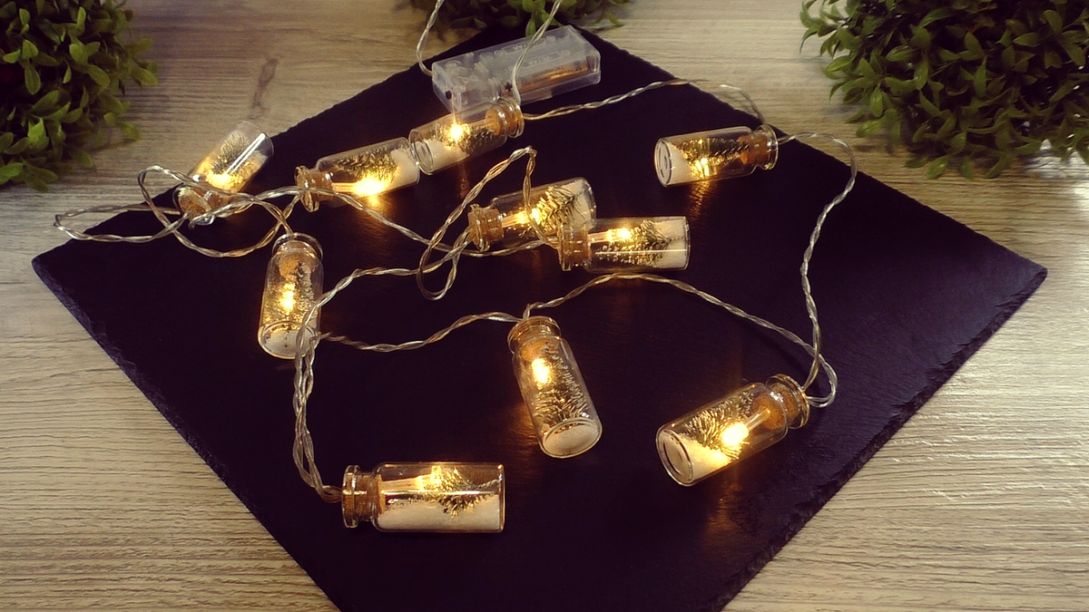 На полках магазина ярко сверкают гирлянды в всевозможных цветах и формах. Каждая из них словно магнитом притягивает взгляды, обещая создать неповторимую атмосферу. Эти световые решения не только выполняют свою основную функцию — освещение, но и становятся стильным элементом декора. Некоторые гирлянды оформлены в виде снеговиков или миниатюрных елочек, помещённых в стеклянные сосуды, что придаёт им сказочный вид.