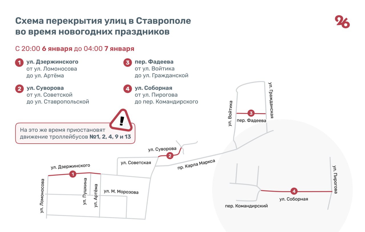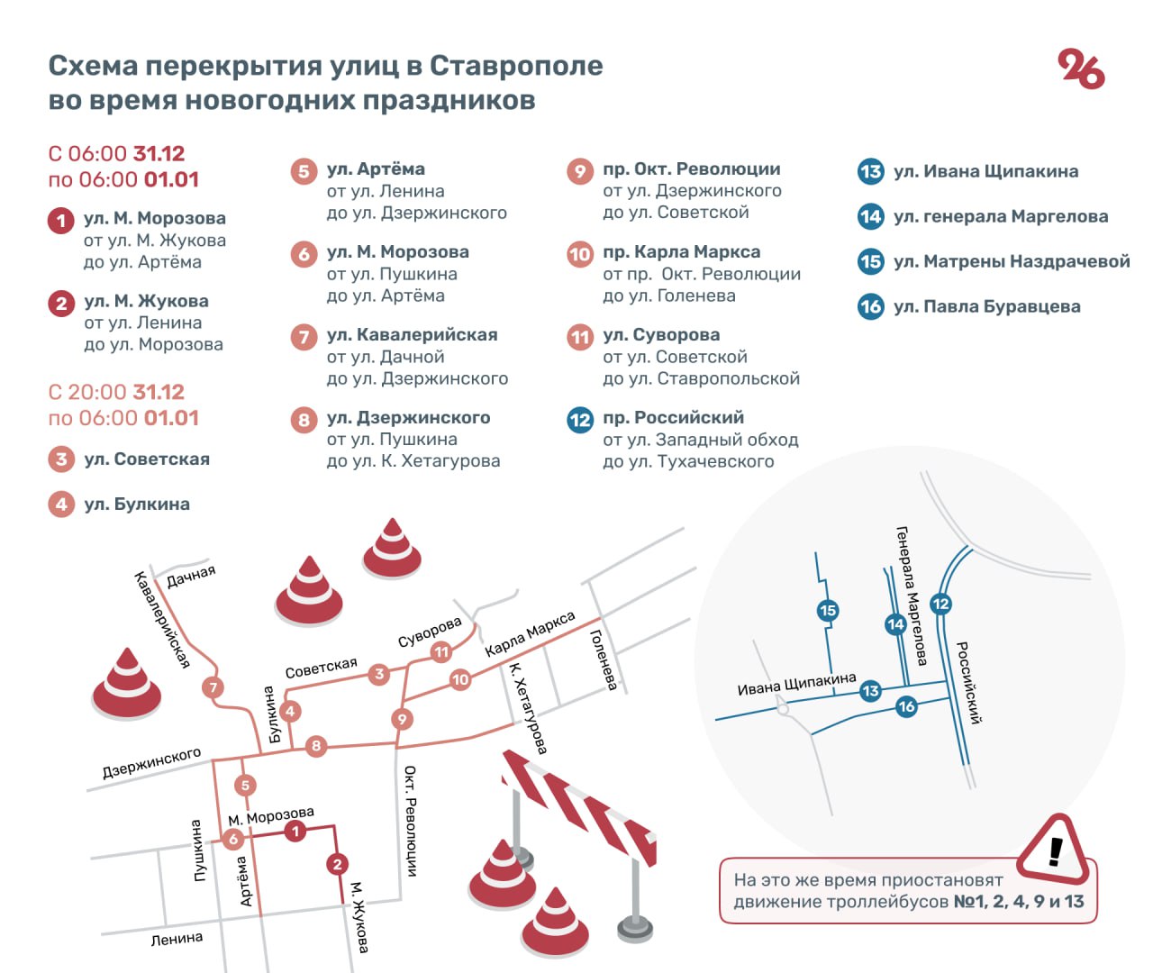 Улицы в центре Ставрополя временно перекроют в новогодние праздники