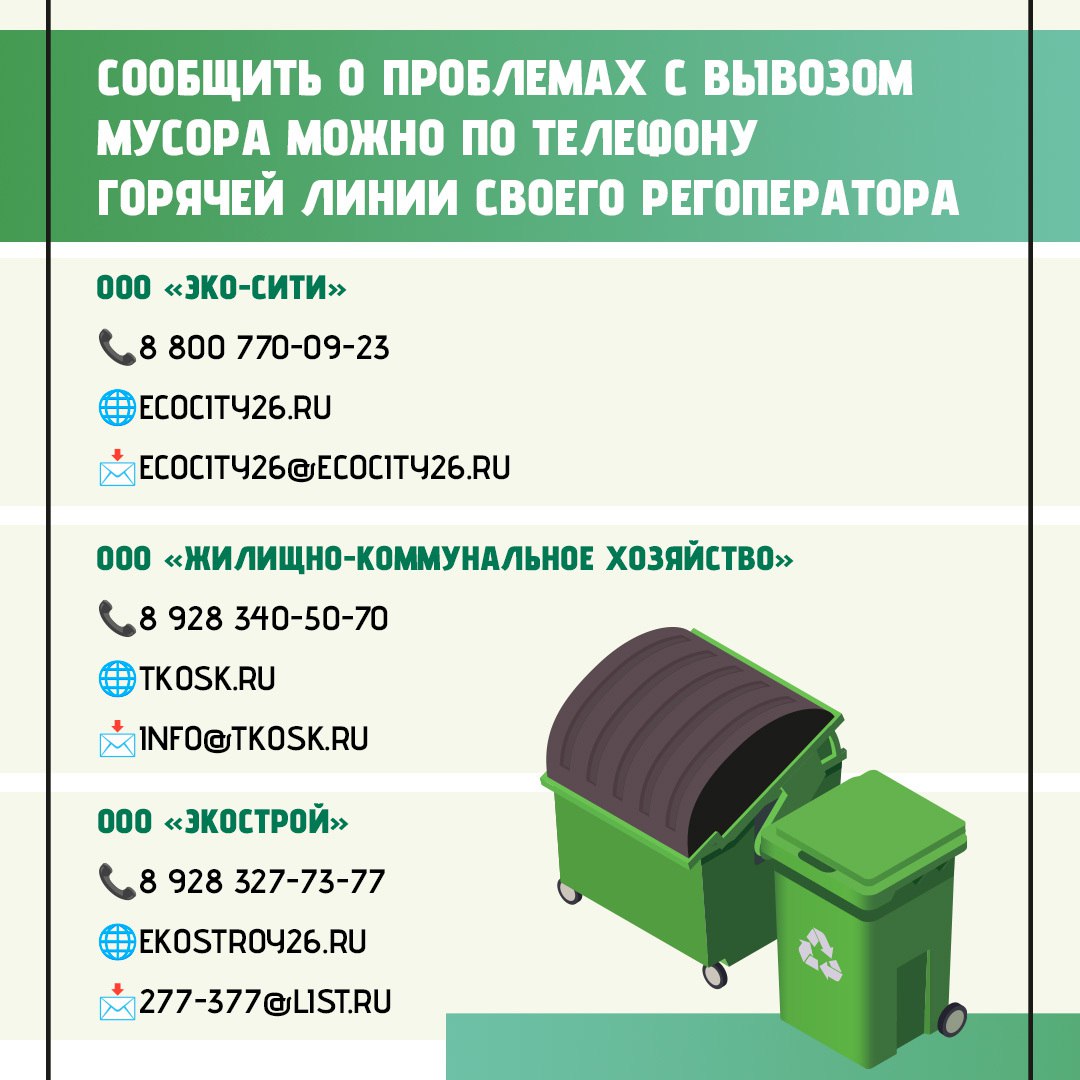 Вывоз мусора в населённых пунктах Ставропольского края проходит согласно утверждённым графикам. Эти графики размещены на сайтах региональных операторов.