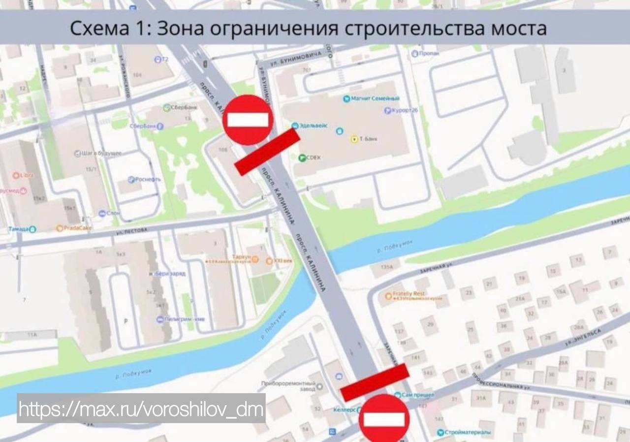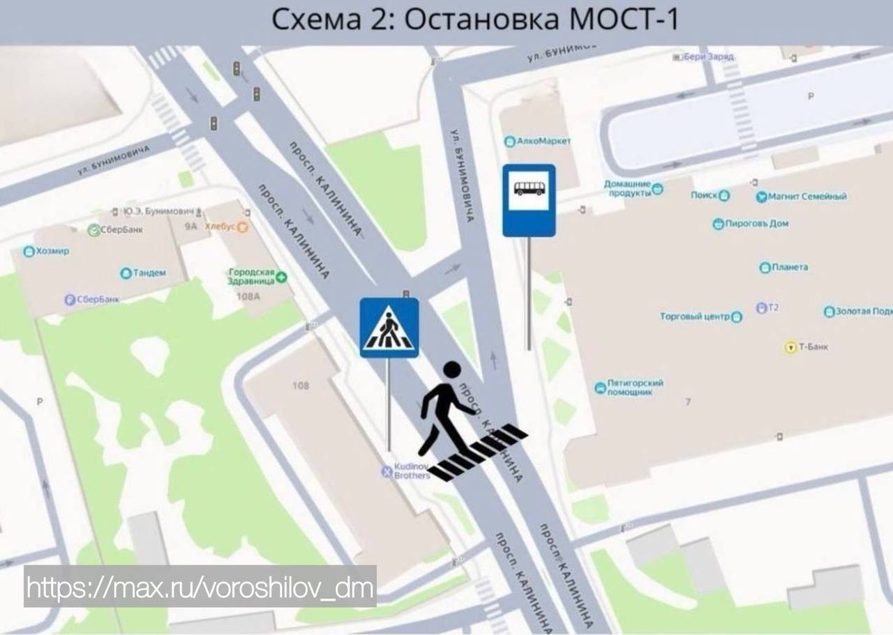 Мост 2: со стороны пос. Горячеводского – в районе обелиска «Участникам гражданской войны» по пр. Калинина в районе пересечения с ул. Энгельса. (Схема 3).