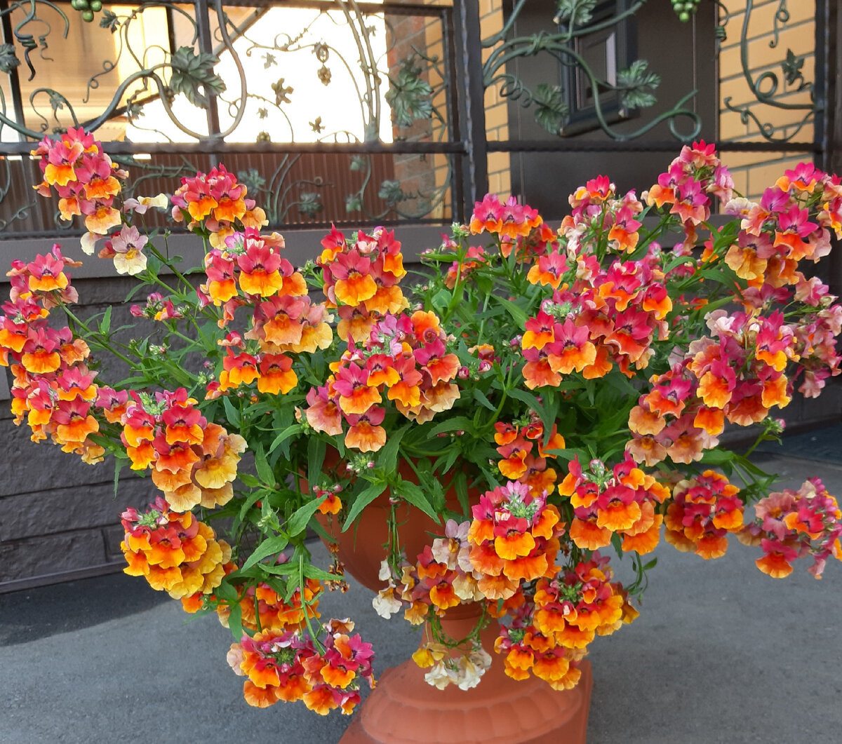- Немезия Ангеларт Оранж — королева оранжевых оттенков, которая радовала своим цветением на протяжении всего лета. Она идеальна для вазонов и отлично смотрится на крылечке.
