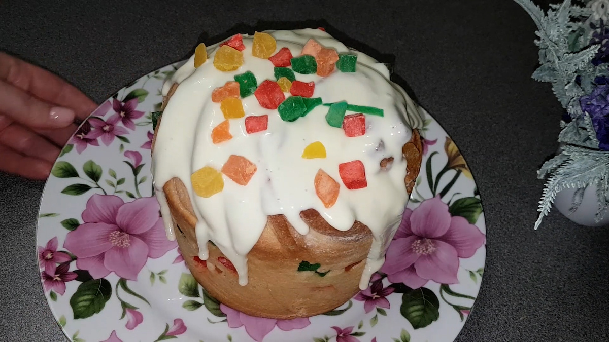 Кулич, испеченный по этому рецепту, получается воздушным и ароматным. После остывания его можно украсить помадкой из сгущенного молока и сухого молока — готовая помадка не требует варки и придаст куличу приятный сладкий привкус.