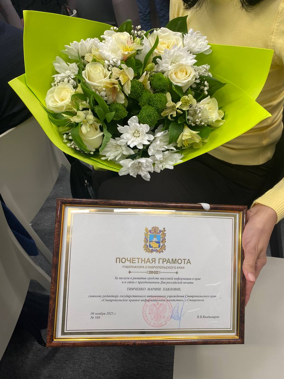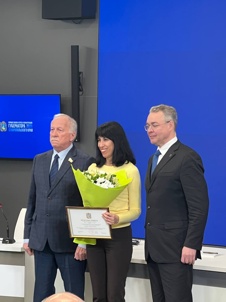 Почётную грамоту и благодарственное письмо вручил губернатор Ставрополья главному редактору и корреспонденту "Победы26"