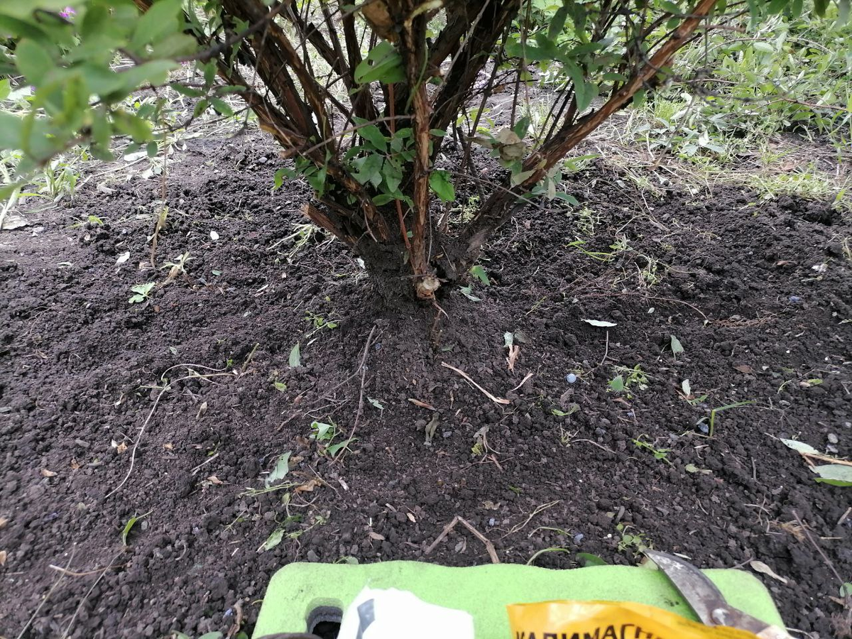 - В бороздку: Откопать канавку вокруг куста глубиной 20-30 см, внести гранулы по положенной норме, при необходимости пролить водой и засыпать бороздку.