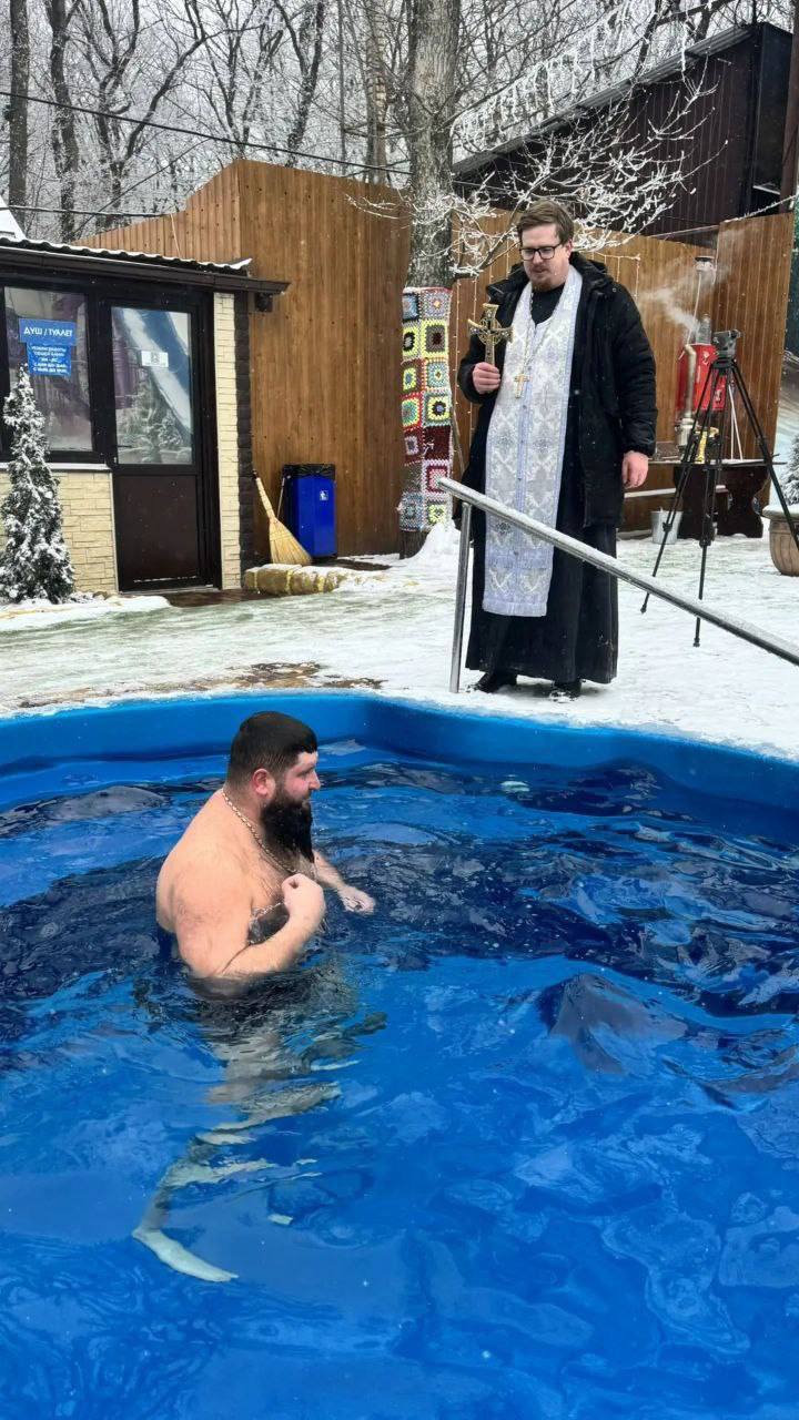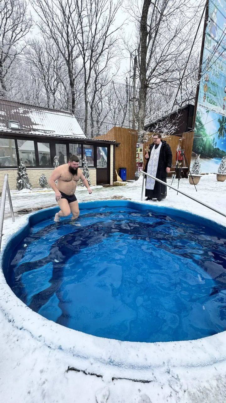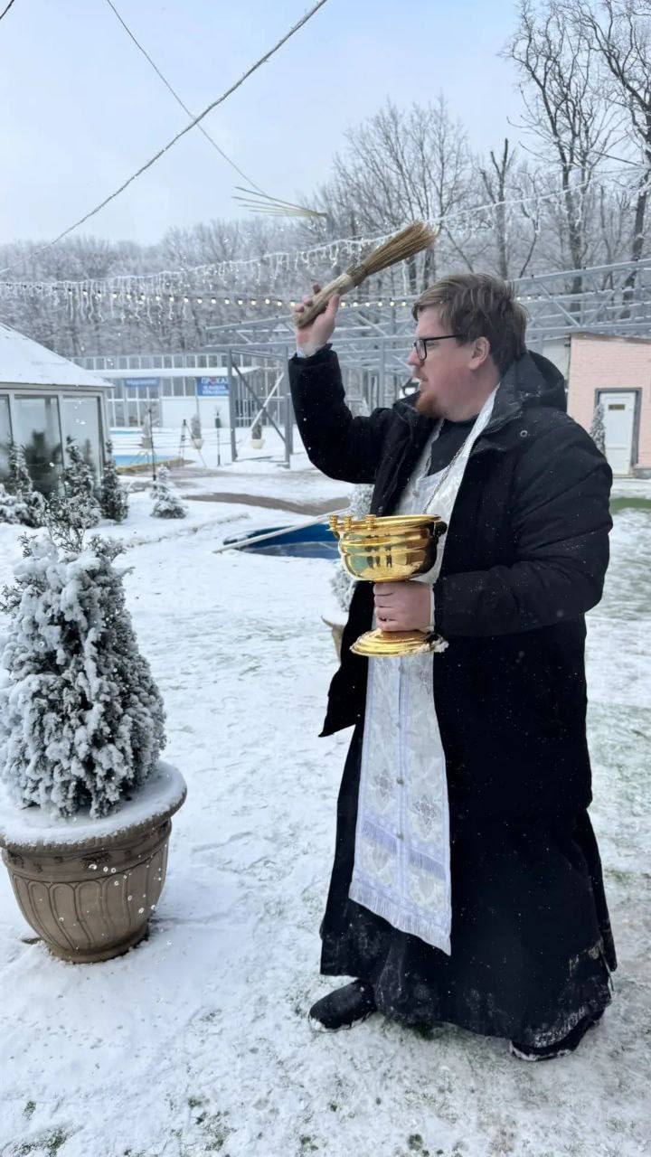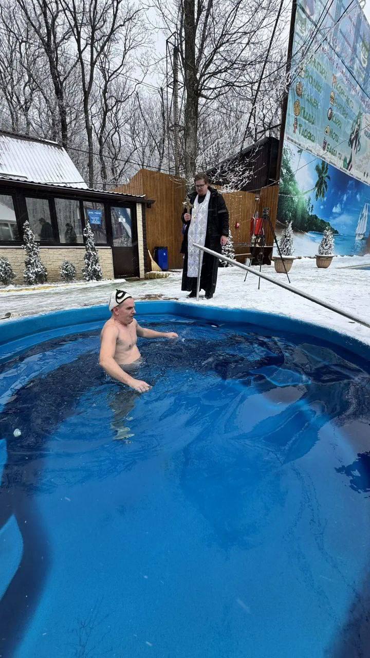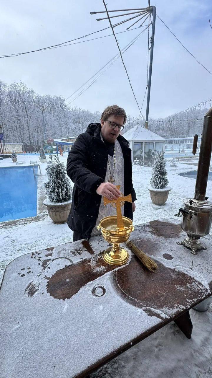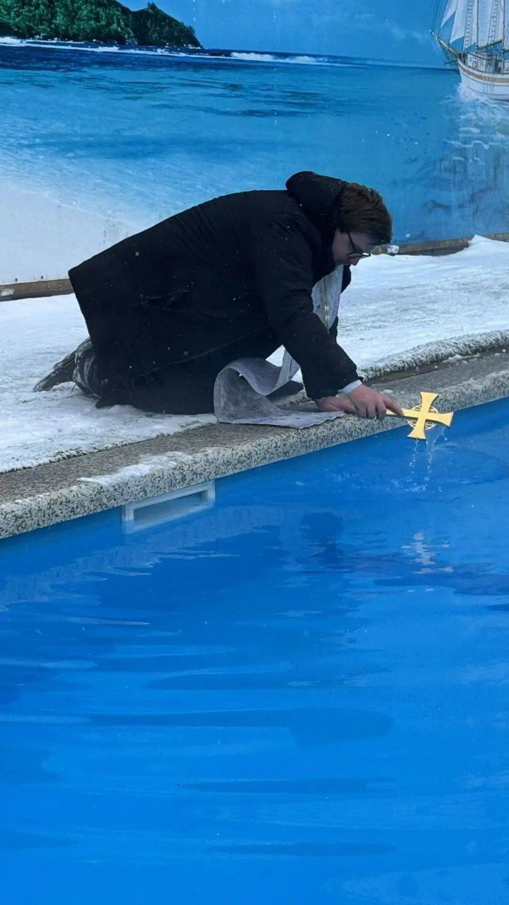 В водно-оздоровительном комплексе парка Победы в канун Крещения состоялось освещение воды в бассейнах.