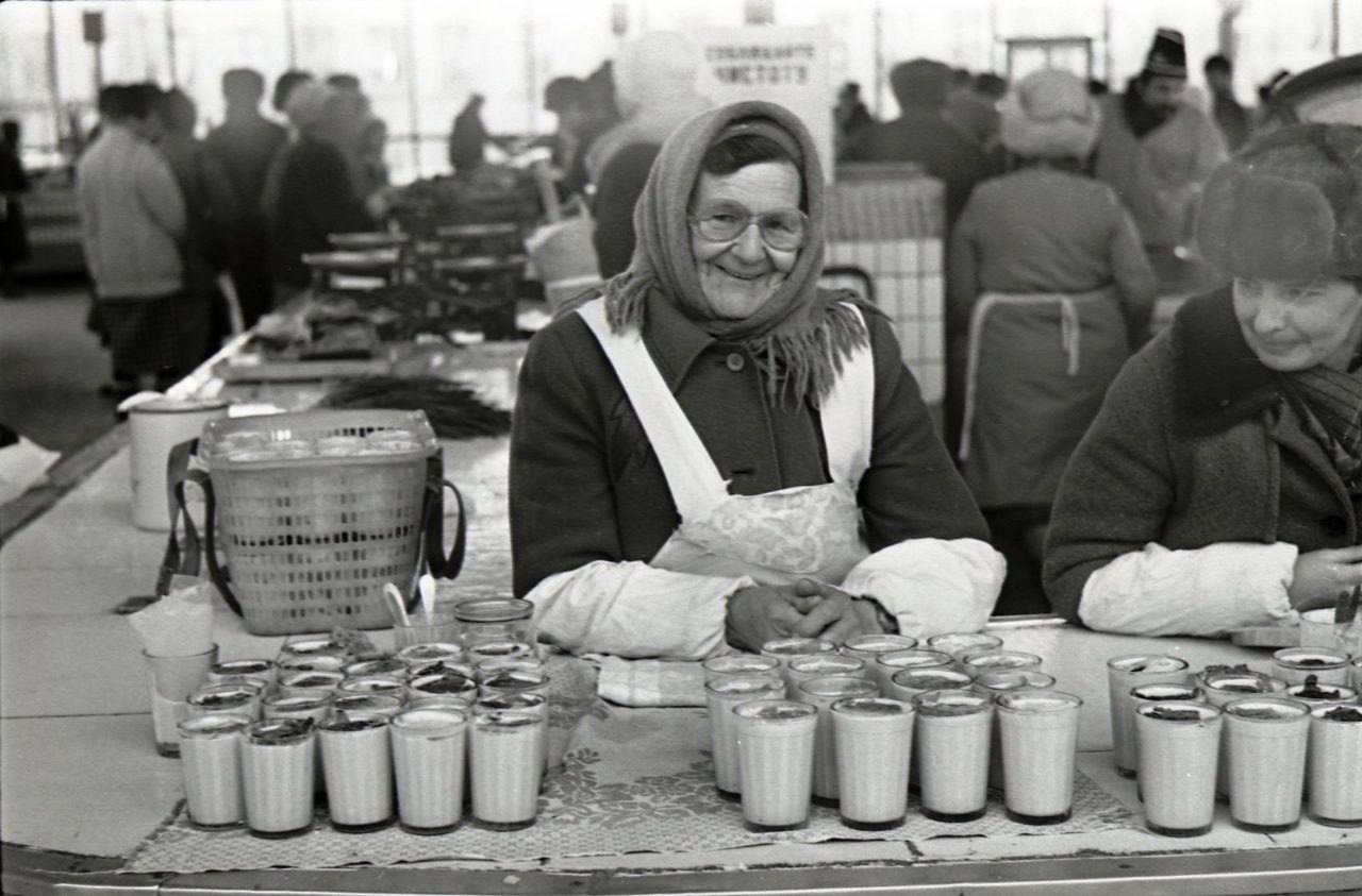 Добрая советская бабушка продаёт кисломолочку на Нижнем рынке Ставрополя