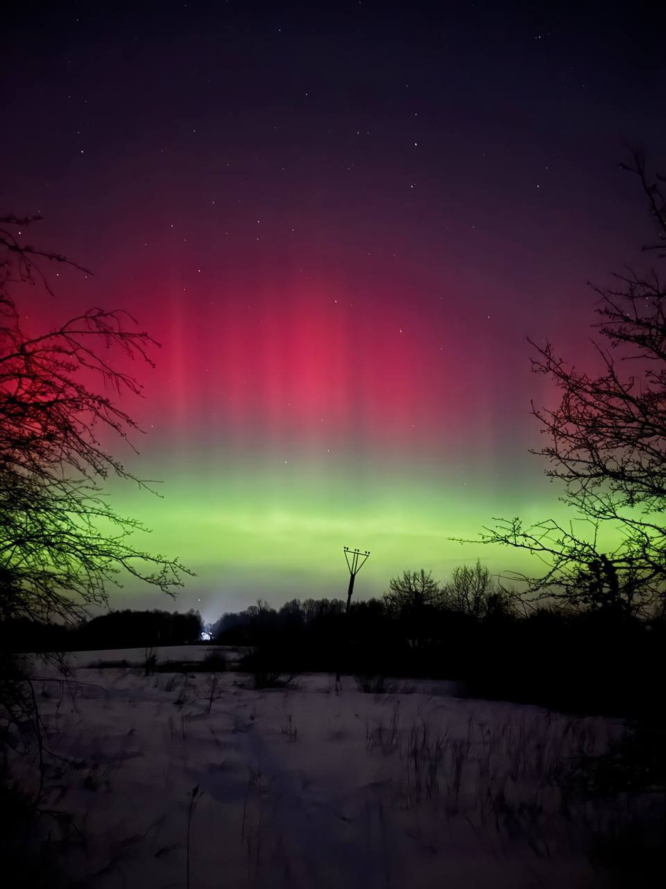 Небо окрасилось в розовый и зеленый цвета из-за мощной солнечной вспышки, которая произошла 18 января