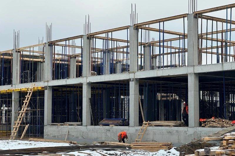 Началось строительство в прошлом году, на данный момент возведены монолитная железобетонная фундаментная плита, конструкции стен и перекрытия подвала, колонны, ригели и перекрытие первого этажа, частично - элементы второго этажа.