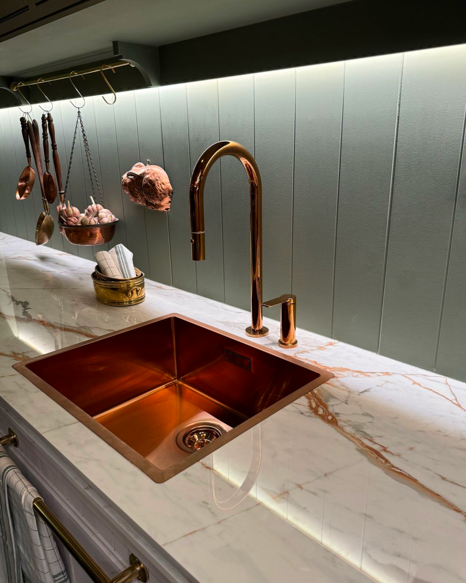 Латунная мойка — это не просто функциональный элемент, а настоящая находка для оформления кухни. Этот уникальный материал, представляющий собой сплав меди с цинком, удивляет своей устойчивостью к коррозии и восхитительным золотистым оттенком. Латунь привносит в интерьер тепло и гармонию, прекрасно сочетается с различными стилями, от классического до лофта.