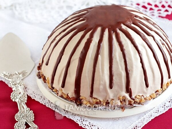 На следующее утро аккуратно достать торт, распределить сверху оставшийся крем и дать заморозиться в морозильной камере на 15 минут. При желании украсить торт шоколадной глазурью.