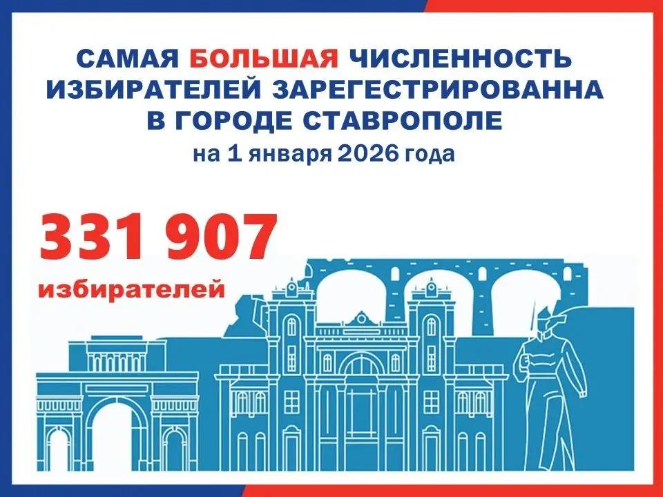 Сведения о численности избирателей, зарегистрированных на территории Ставропольского края по состоянию на 1 января 2026 года, размещены на нашем сайте в разделе «Численность избирателей» (http://www.stavropol.izbirkom.ru/chislennost-izbirateley/?ELEMENT_ID=3118)