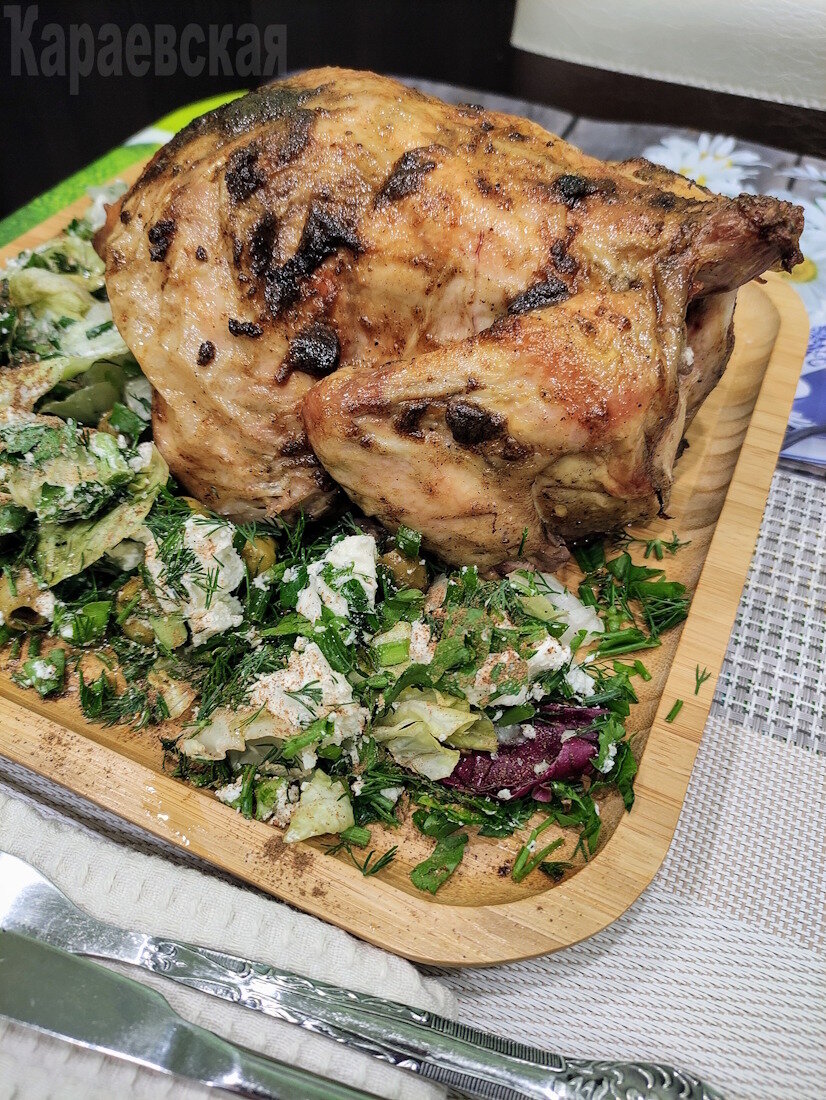 Когда птица готова, выложите ее на блюдо и украсьте листовой зеленью или овощами. Теперь можно наслаждаться вкусным и сытным обедом или ужином!