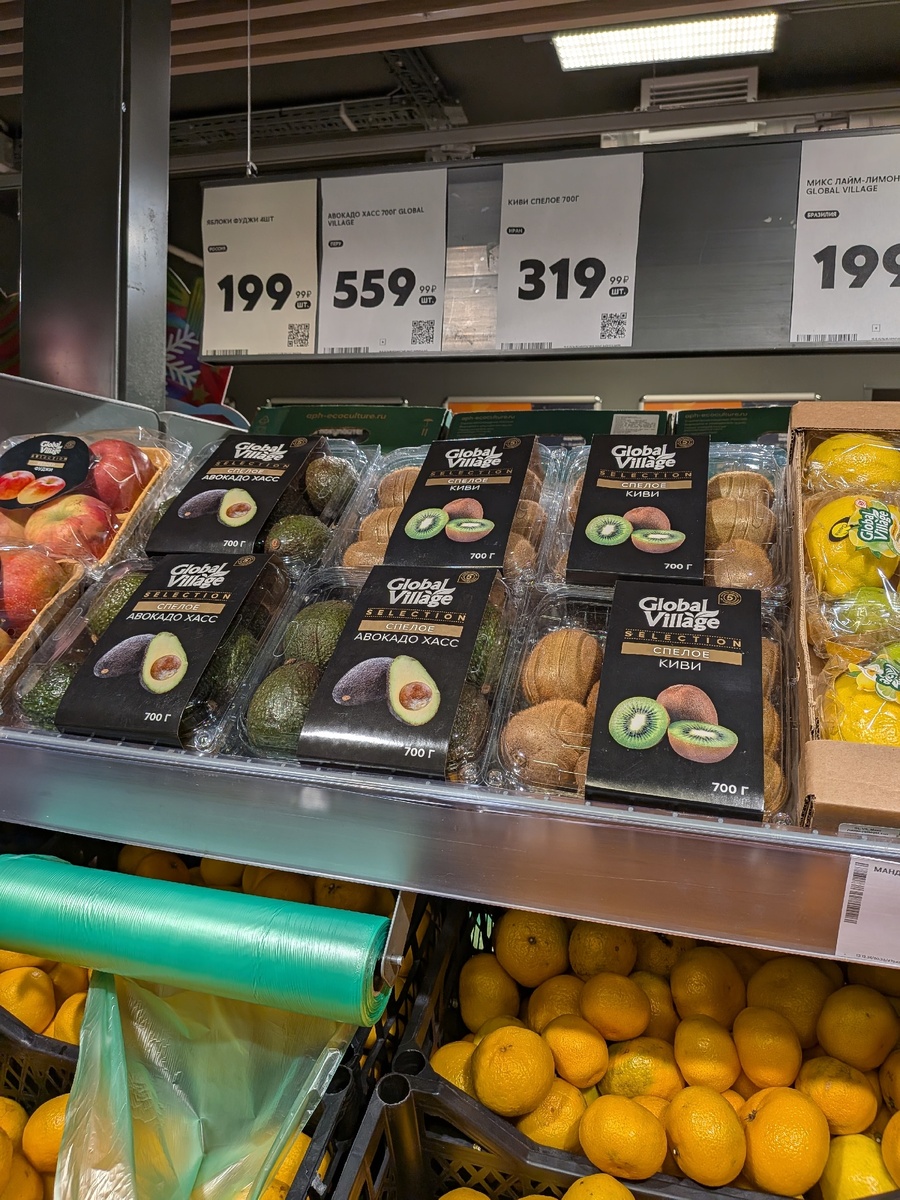 Бренд Global Village, представленный исключительно в Пятерочке, произвел особое впечатление. Новые упаковки свежих фруктов и овощей выглядят стильно и дорого, создавая ощущение высшего качества. На каждой коробке написано "спелое", что добавляет уверенности в выборе товара. Например, киви и набор лимона с лаймом оставили яркие впечатления.