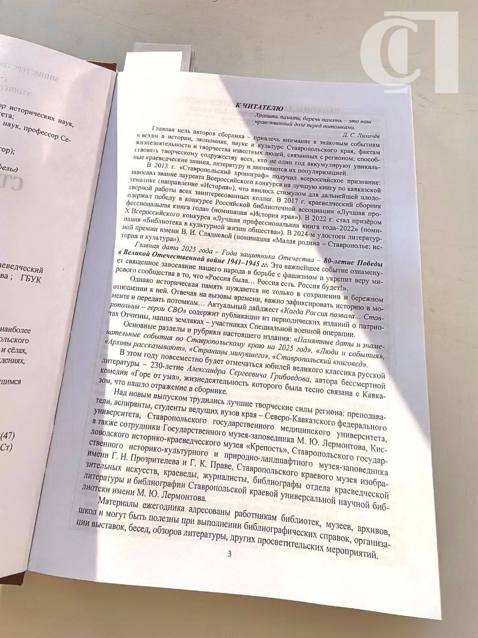В Лермонтовке состоялась презентация «Ставропольского хронографа – 2025»