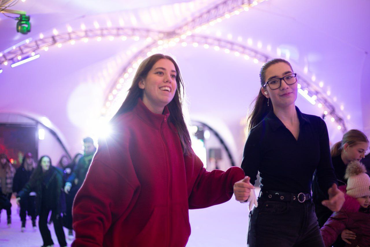 Вечером воскресенья здесь было многолюдно, шумно, ярко и весело. По доброй традиции отметить День студента собрались ребята из разных учебных заведений города. Были конкурсы и фото, танцы и импровизации, игры и лотерея. А новичкам встать на коньки помогали более опытные товарищи. В студенческой семье без взаимовыручки никак!