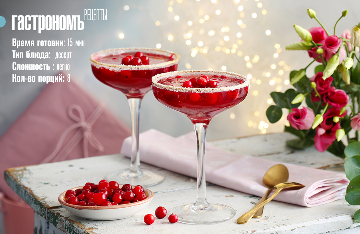 Для безалкогольного десерта можно заменить шампанское соком яблок или винограда — результат также будет потрясающим. Перепробуйте разные сочетания: желе вкусно готовить не только с клюквой, но и с брусникой или мандаринами. В случае с мандаринами, их необходимо очистить и нарезать, добавив к сиропу на втором шаге.