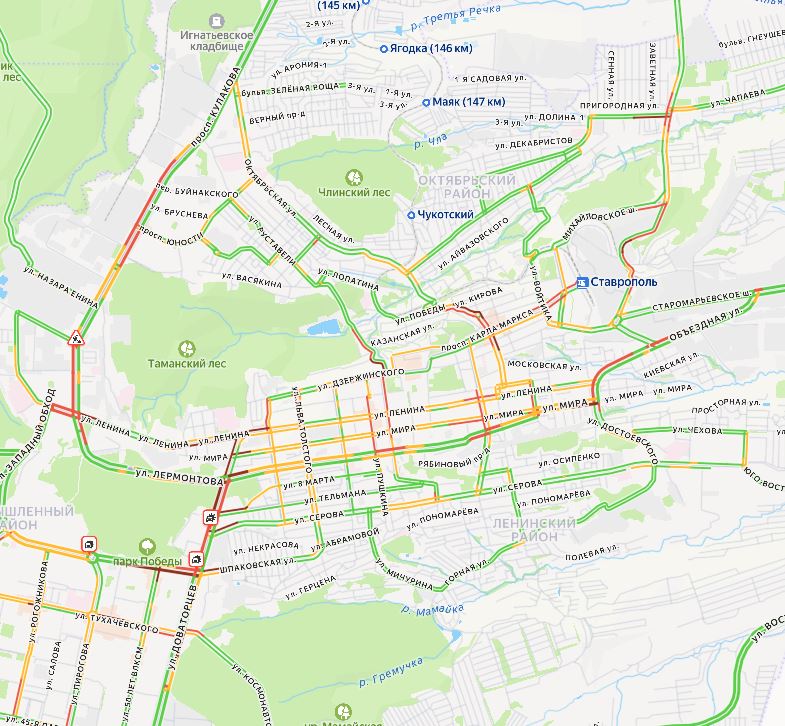 Восьмибалльные пробки сковали Ставрополь вечером в четверг