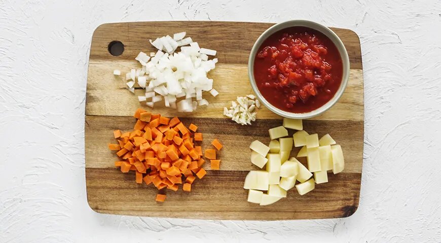 - Морковь — 1 шт. (порезать кубиками 1 см)
