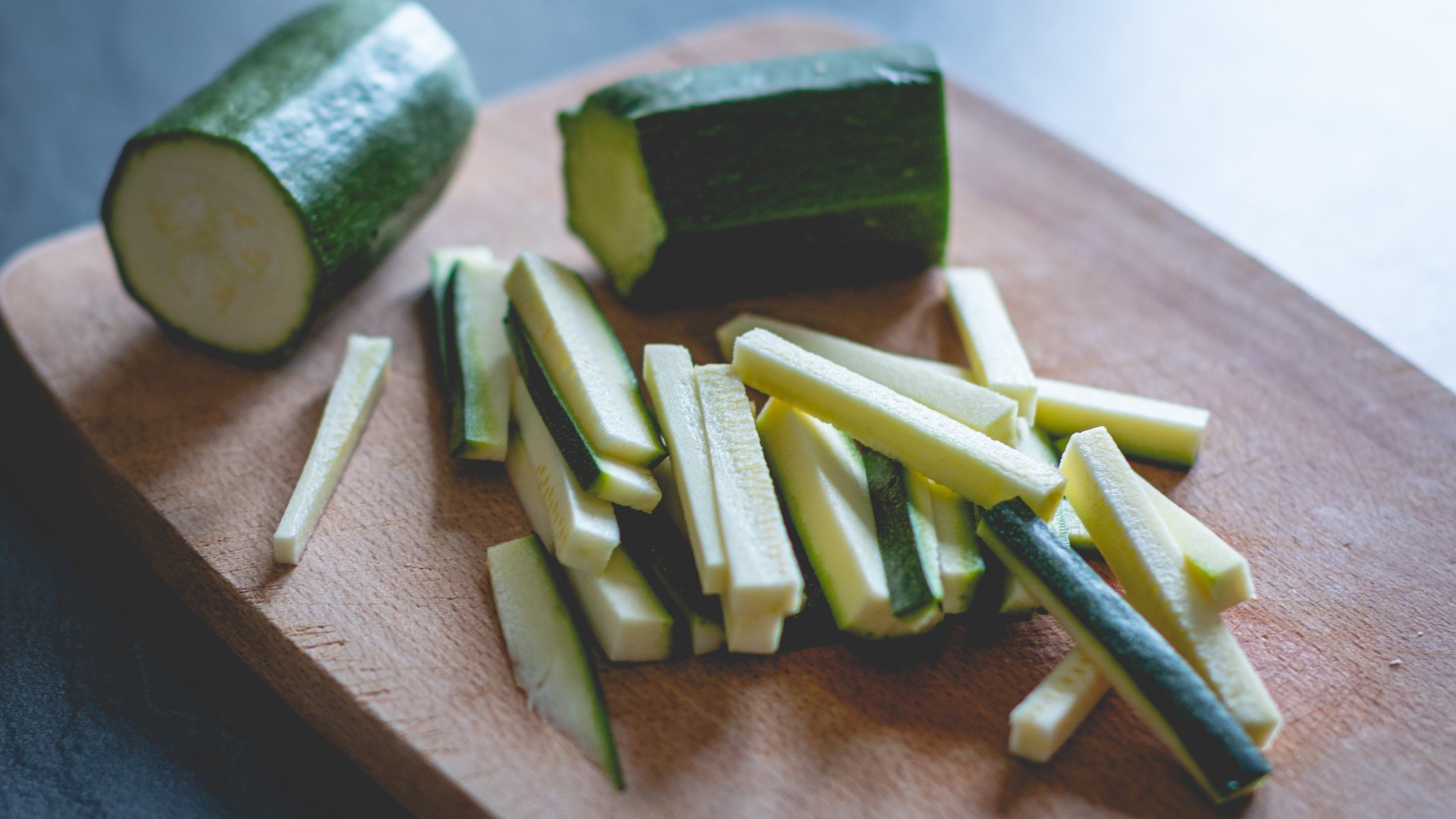 Лук нарежьте кубиками и обжарьте до золотистой корочки. Затем выложите на сковороду тертую морковь. Еще через 2 минуты добавьте нарезанные кабачки.