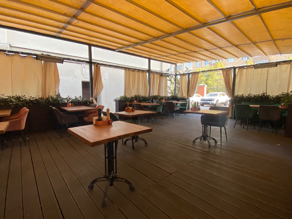 Несмотря на довольно непрезентабельный вид снаружи, ресторан предлагает приятную атмосферу для отдыха на свежем воздухе. С деревянными столами, мягкими стульями и зелеными насаждениями, здесь царит дух уюта, особенно в солнечные дни.