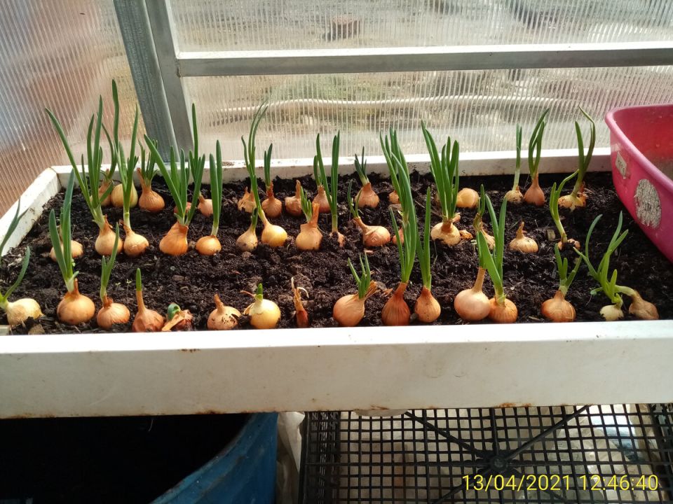 Лук на зелень планируется высаживать сразу по приезду на участок. На улице также весело выглядывают батун и шнитт-лук, которые легко переносят заморозки и приносят нам желанные витамины. Новинкой этого года станет сорт Грин Баннер, лук на перо из чернушки, уже активно растущий на подоконнике. Весной он заменит сорняки, заполнив «островок» зелени.