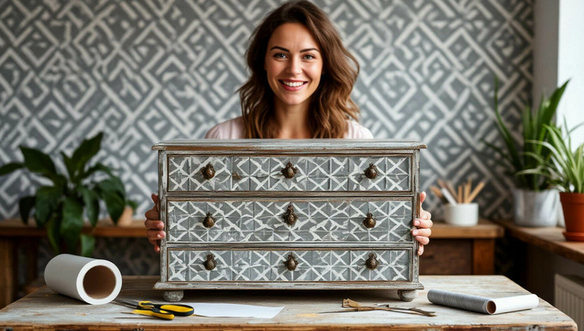 Первое, что можно сделать — это обновить старую мебель. Например, обклеивание фасадов комодов и шкафов обоями поможет создать уникальный предмет, который станет настоящей изюминкой вашего интерьера. Для этой простой, но эффективной идеи потребуется: