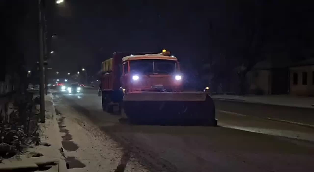 Погода меняется: прошёл снег, температура понижается. Техника в городе, дороги обрабатываются.