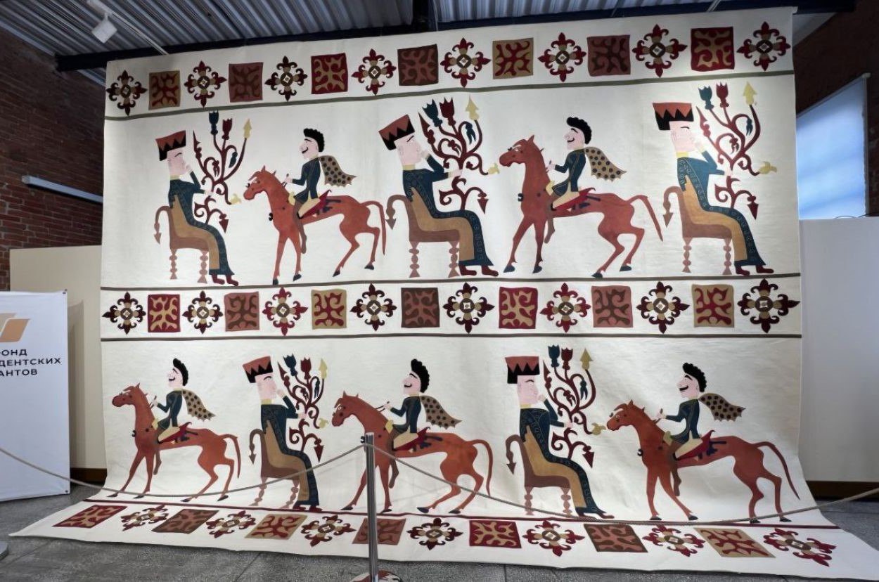 Центральным экспонатом, привезенным из республики на выставку в столице, стал восстановленный войлочный ковер, оригинал которого относится к V-III векам до нашей эры и был найден в скифском Пазырыкском некрополе в конце 40-х годов прошлого века на Алтае. Этот войлочный ковер – самый старейший и большой в мире – хранится в Эрмитаже!