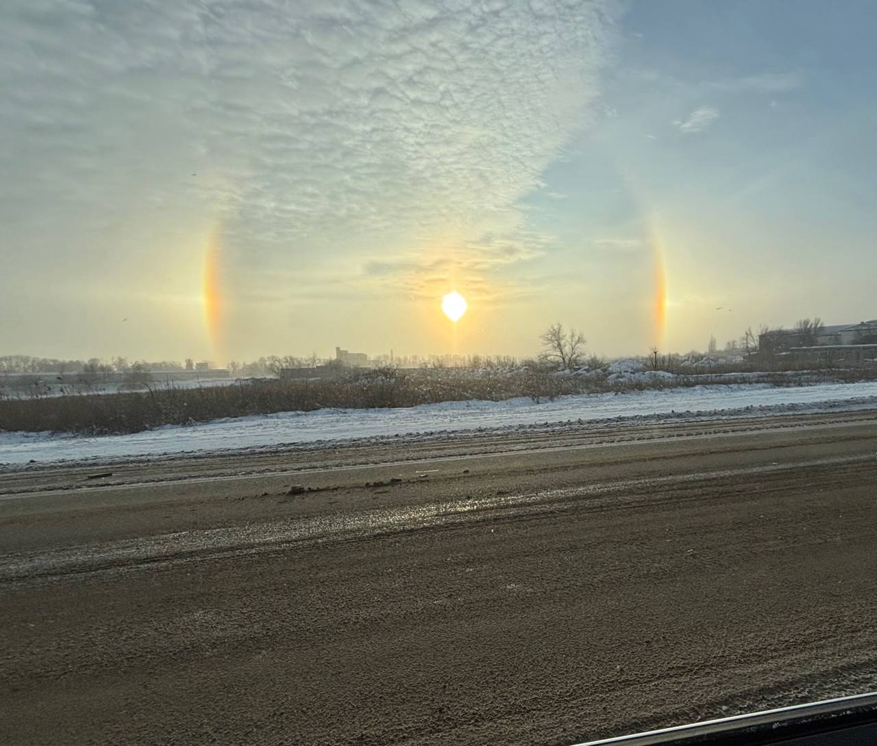 Фото из разных концов города делятся подписчики. Согласно народным приметам появление гало предвещает снижение морозов, потепление и переход к осадкам.