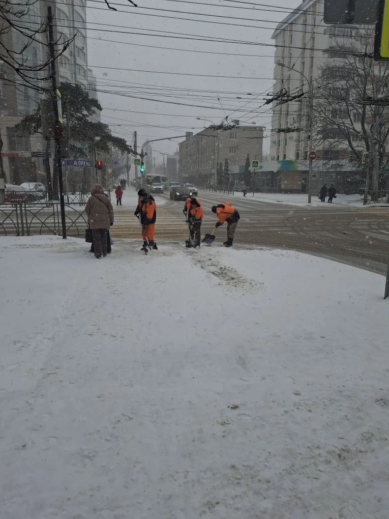 В связи с резким ухудшением погоды на дорогах Ставрополя продолжает активную работу коммунальная техника. Основной упор сейчас делаем на обработку противогололедными материалами автомагистралей, проездов к социальным объектам, тротуаров и остановочных павильонов. На аварийно-опасных участках и участках со сложным рельефом местности организовано дежурство коммунальных звеньев для того, чтобы минимизировать возможные риски.