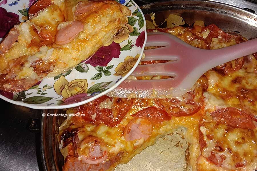- Любимые ингредиенты из холодильника: помидоры, колбасы, ветчина, сосиски, куриное филе, грибы и т. д.