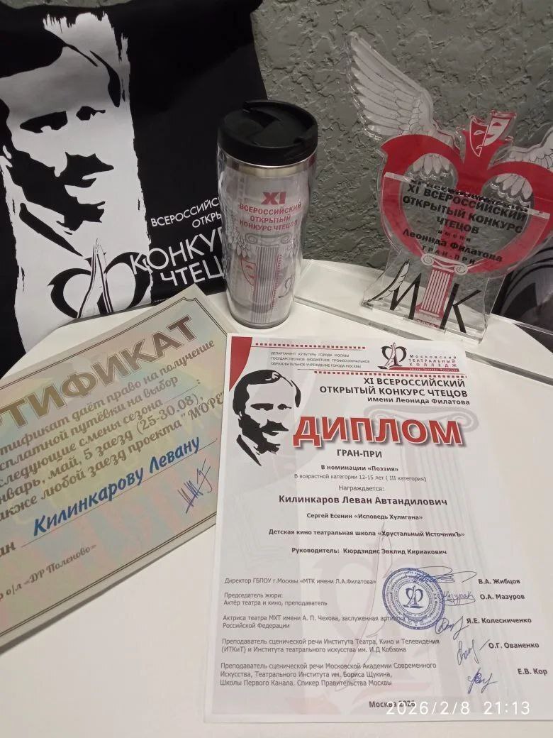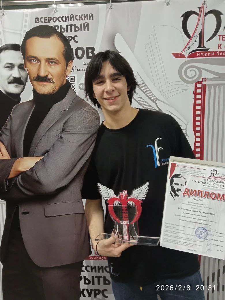 Именно так можно описать успех ессентукского школьника Левана Килинкарова, ученика 9 «А» класса школы № 3. Он стал победителем XI Всероссийского конкурса чтецов имени Леонида Филатова и завоевал Гранпри!