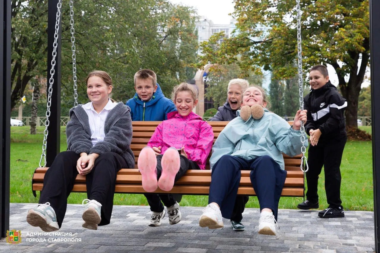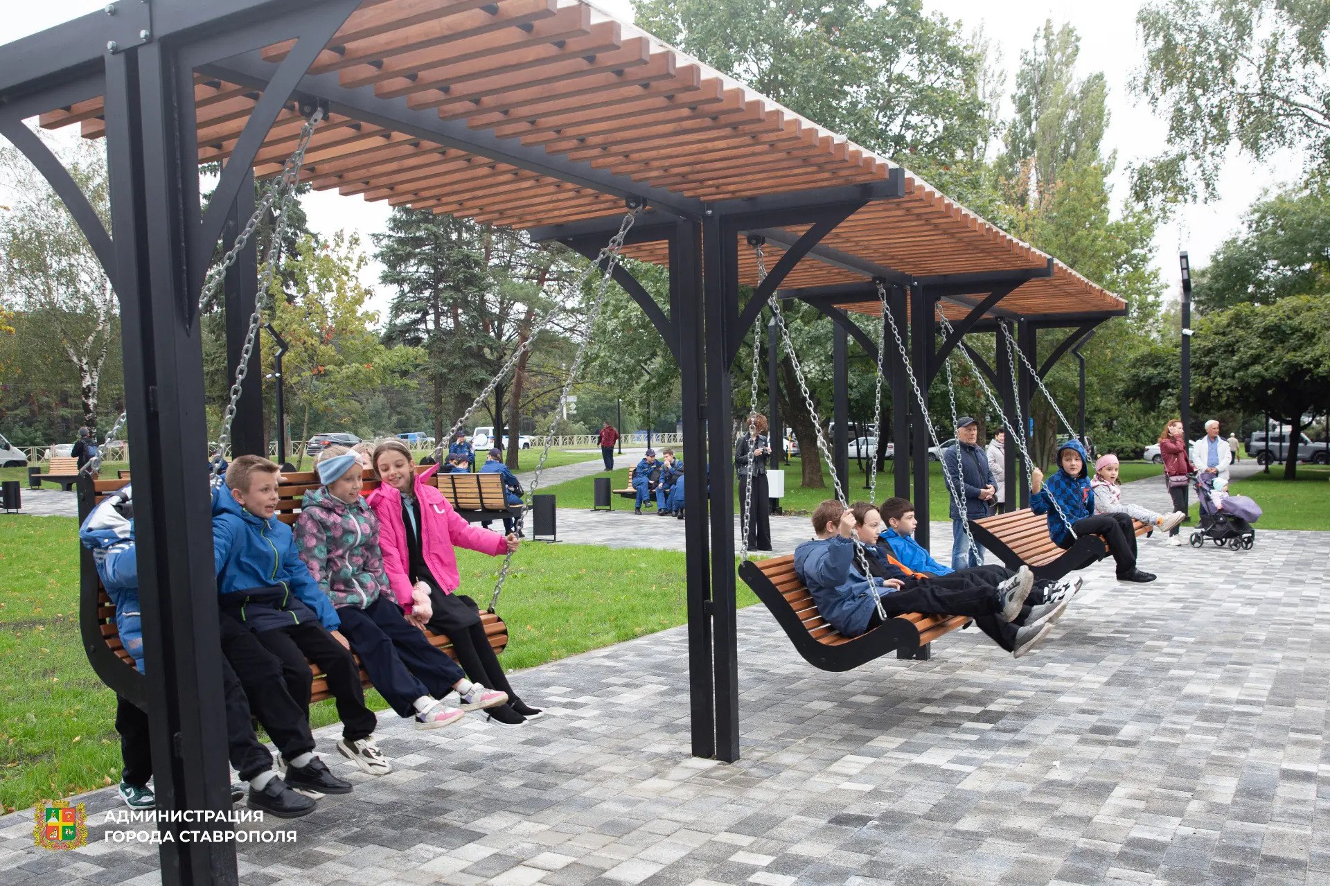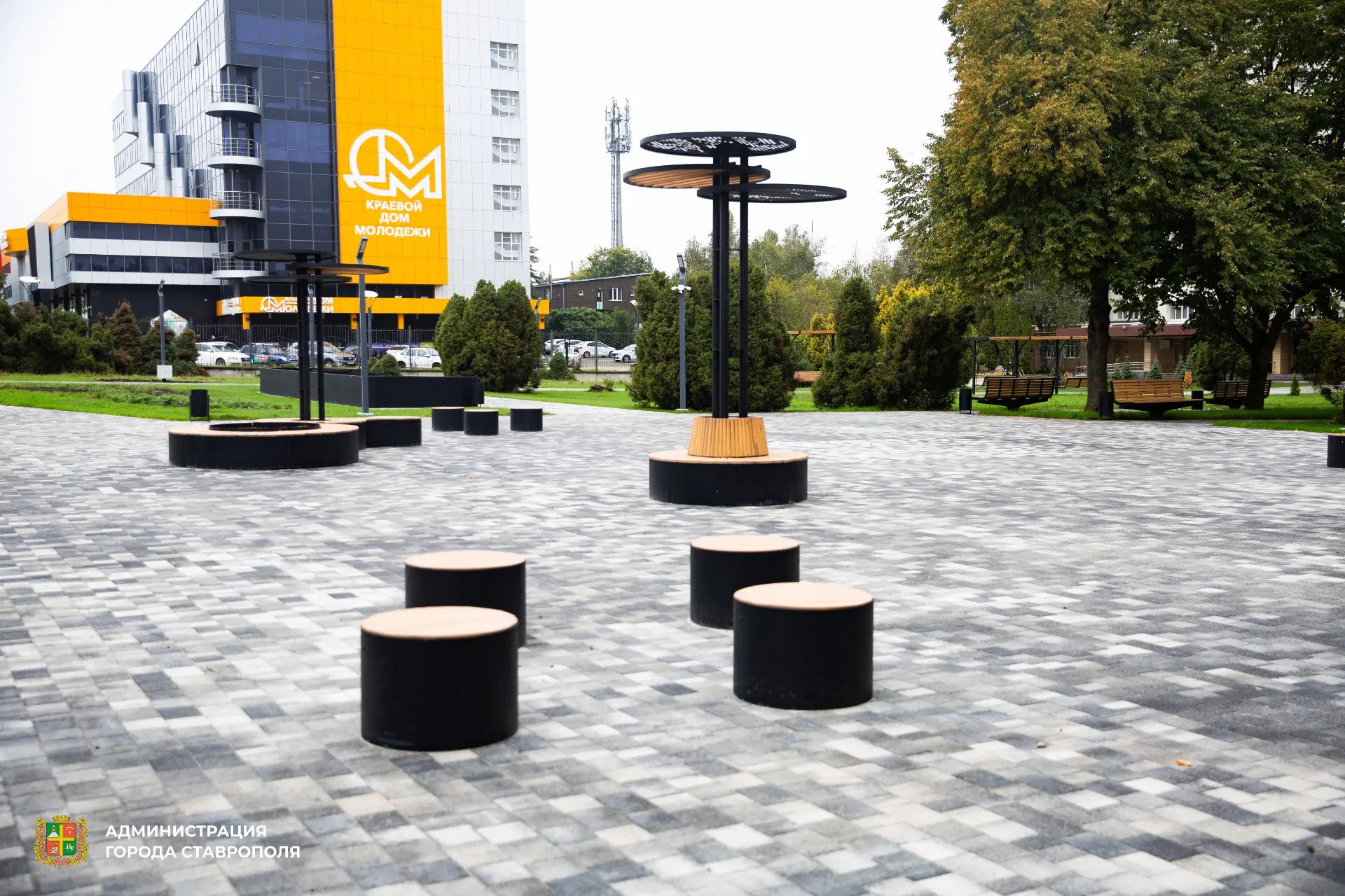 Сквер площадью около 10 тыс. кв. м оснащён дорожками, зелёными газонами, лавочками, качелями, беседками и навесами. Более 50 фонарей освещают прогулочные зоны, видеонаблюдение обеспечивает безопасность, а в рамках краевой программы поддержки инициатив здесь оборудовали спортивную площадку с тренажёрами.
