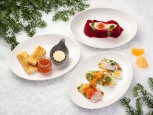 Особое внимание уделено рейсам, которые отправляются в новогоднюю ночь. Пассажиры дальних рейсов бизнес-класса, вылетающих из Москвы 31 декабря и 1 января, смогут насладиться изысканным праздничным меню. Оно включает известные новогодние блюда в авторской интерпретации. На столах гостей появится классический набор с красной икрой и авторские дары, такие как трио «Оливье» с морепродуктами и даже уникальные мясные деликатесы.
