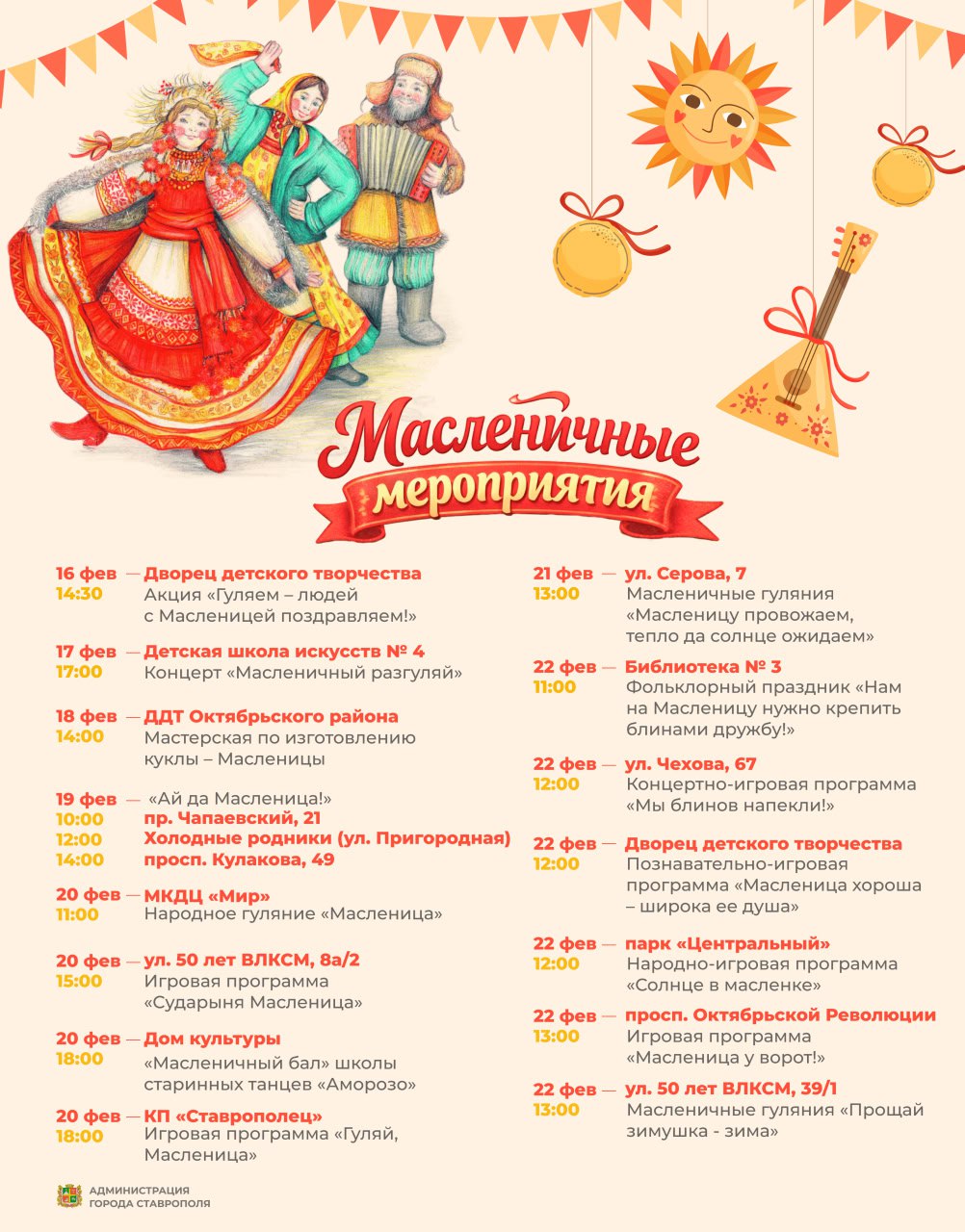 Масленицу в Ставрополе отметят масштабными гуляньями и народными забавами