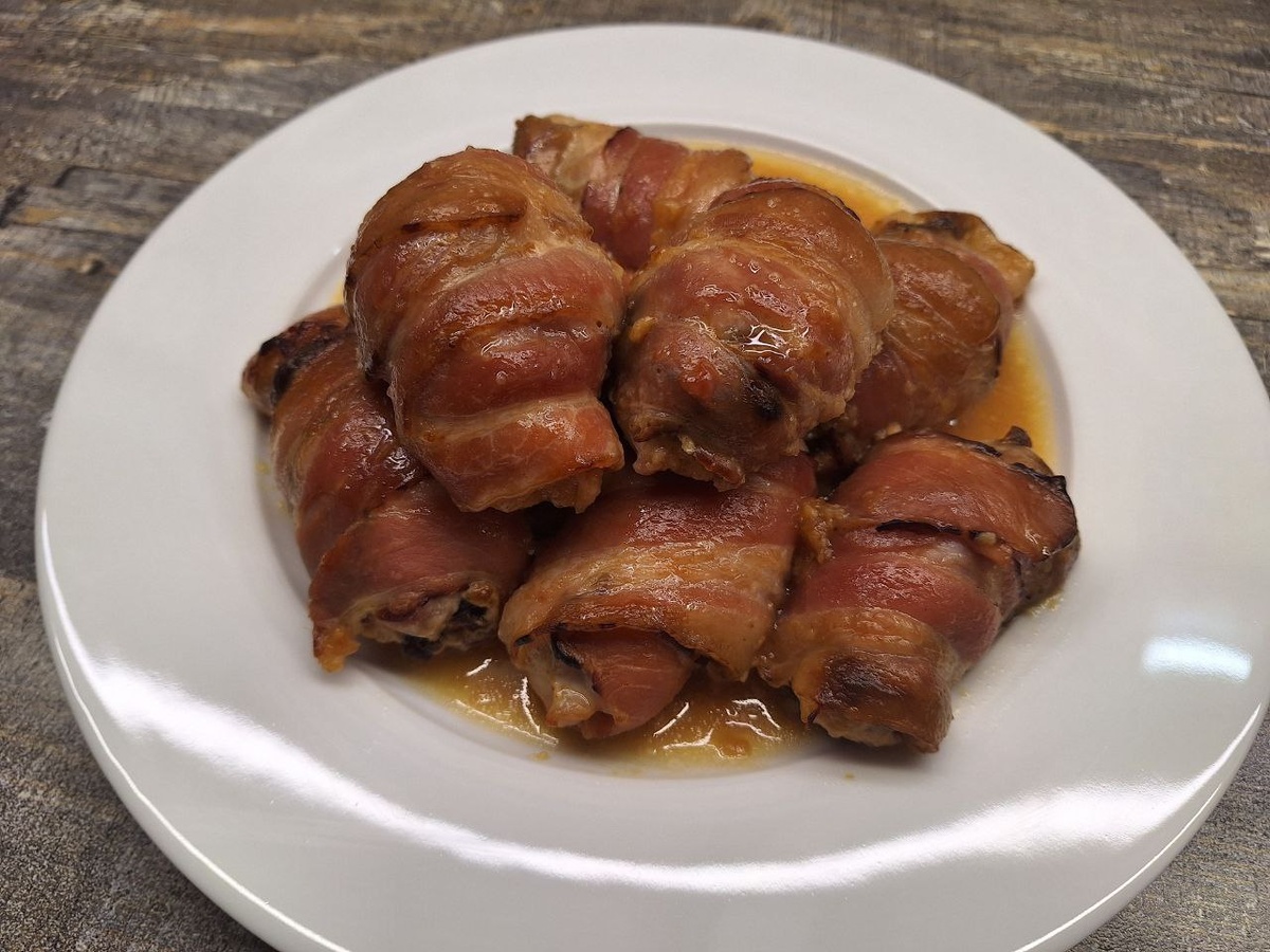 Этот оригинальный рецепт куриных рулетиков с черносливом, завернутых в бекон, станет настоящим украшением любого праздника. Простота и доступность ингредиентов не помешают создавать стильное и вкусное блюдо, способное порадовать гостей и близких. Такие рулетики хорошо подойдут как для уютного семейного ужина, так и для праздничного стола — их эффектный внешний вид обязательно привлечет внимание.