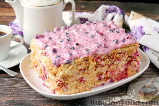 Чтобы создать атмосферу праздника, легко можно воспользоваться рецептом торта из слоёного теста со сметанным кремом и ягодами. Это десерт порадует как свежими ягодами, так и замороженными, сочетая в себе хрустящую текстуру и яркий вкус. Для его создания потребуется: