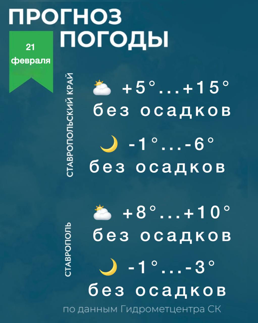 Сегодня ставропольцев ожидает теплая погода. Столбики термометров днем поднимутся до плюс 11 градусов в Ставрополе, и до плюс 16 градусов – по краю. Порывы ветра будут достигать 11 метров в секунду.По прогнозам синоптиков, осадков не...
