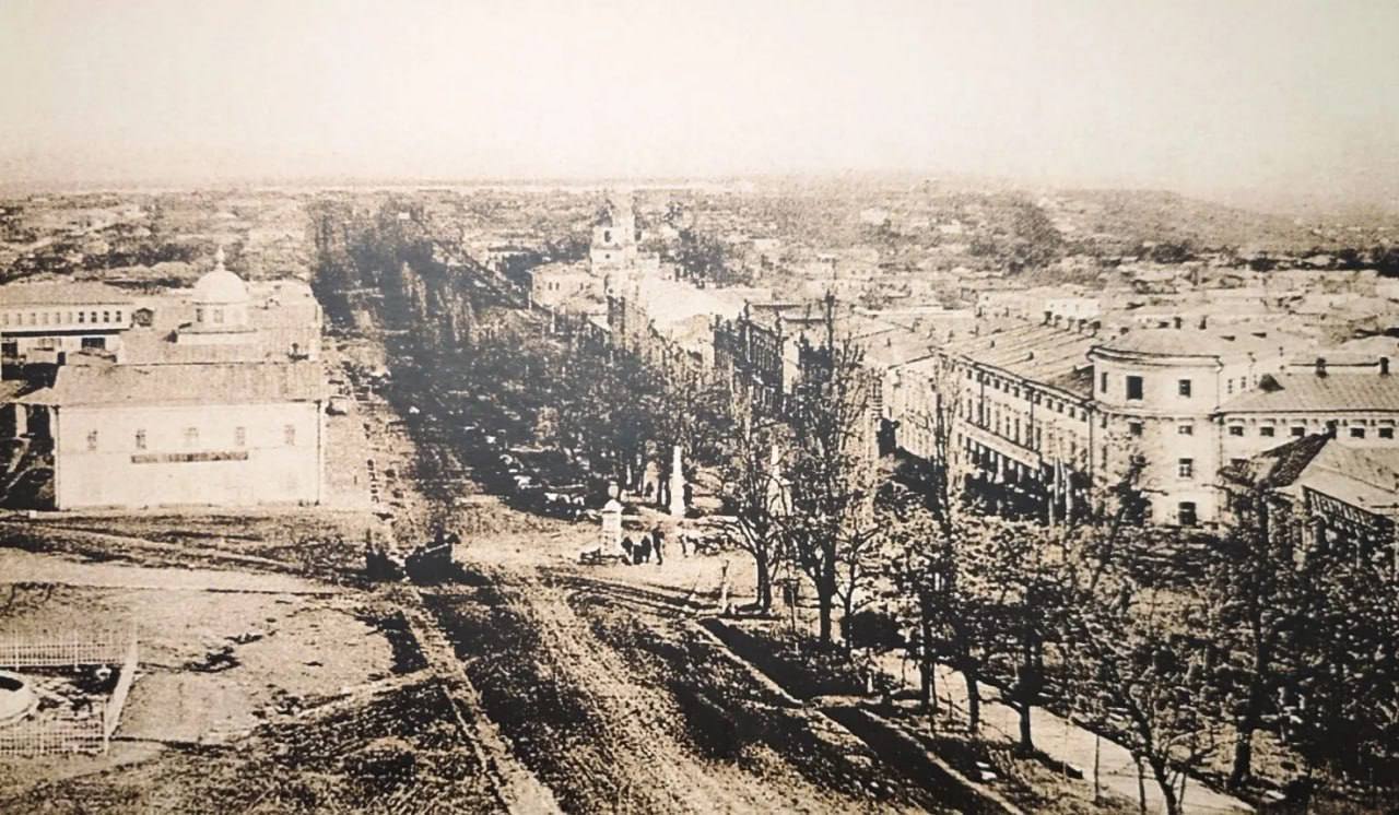 Вид со здания городской Думы на Николаевский проспект (ныне — пересечение Карла Маркса/Розы Люксембург)