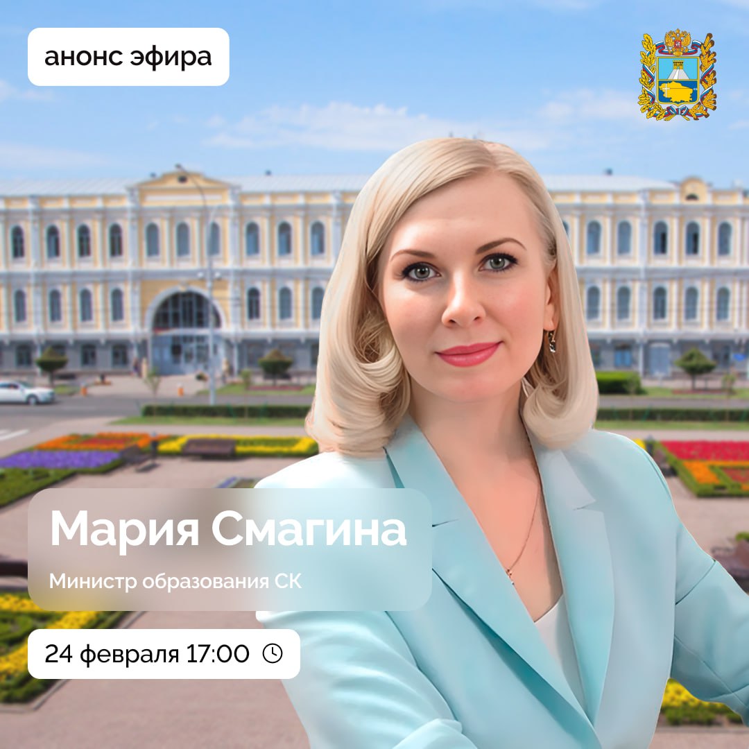 Об этом и многом другом расскажет министр образования Ставрополья Мария Смагина в прямом эфире.