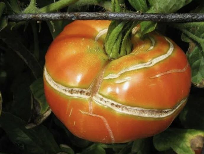 - Что происходит: В условиях засухи плановая обильная поливка приводит к стремительному поступлению влаги в плоды, что вызывает напряжение и трещины на поверхности.