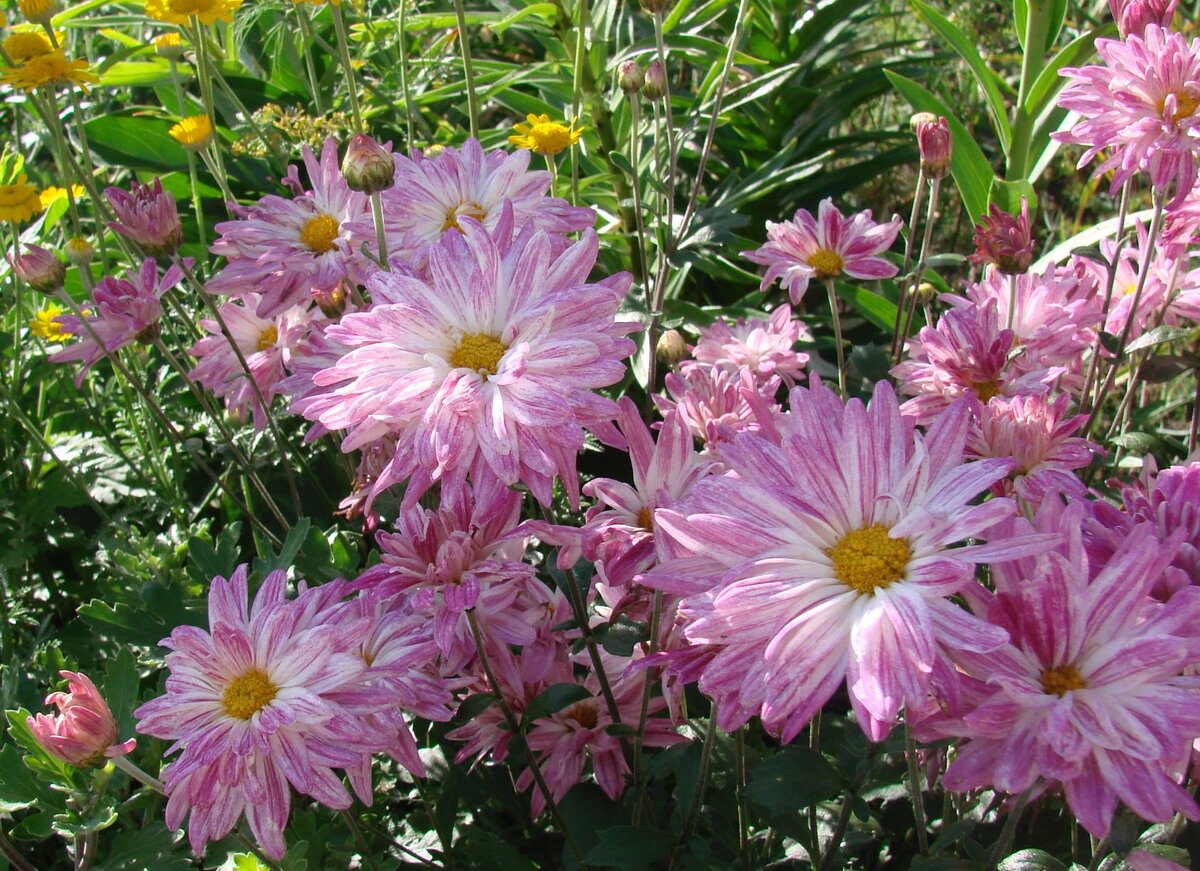 Даже несмотря на капризы погоды, яркие цветы корейских хризантем радуют глаз до прихода снега. В условиях средней полосы России эти многолетние растения прекрасно чувствуют себя в саду. Они, хотя и не такие эффектные, как крупноцветковые хризантемы, образуют крепкие кусты, увенчанные многочисленными соцветиями диаметром от 5 до 8 см, и отлично дополняют осеннюю палитру сада.