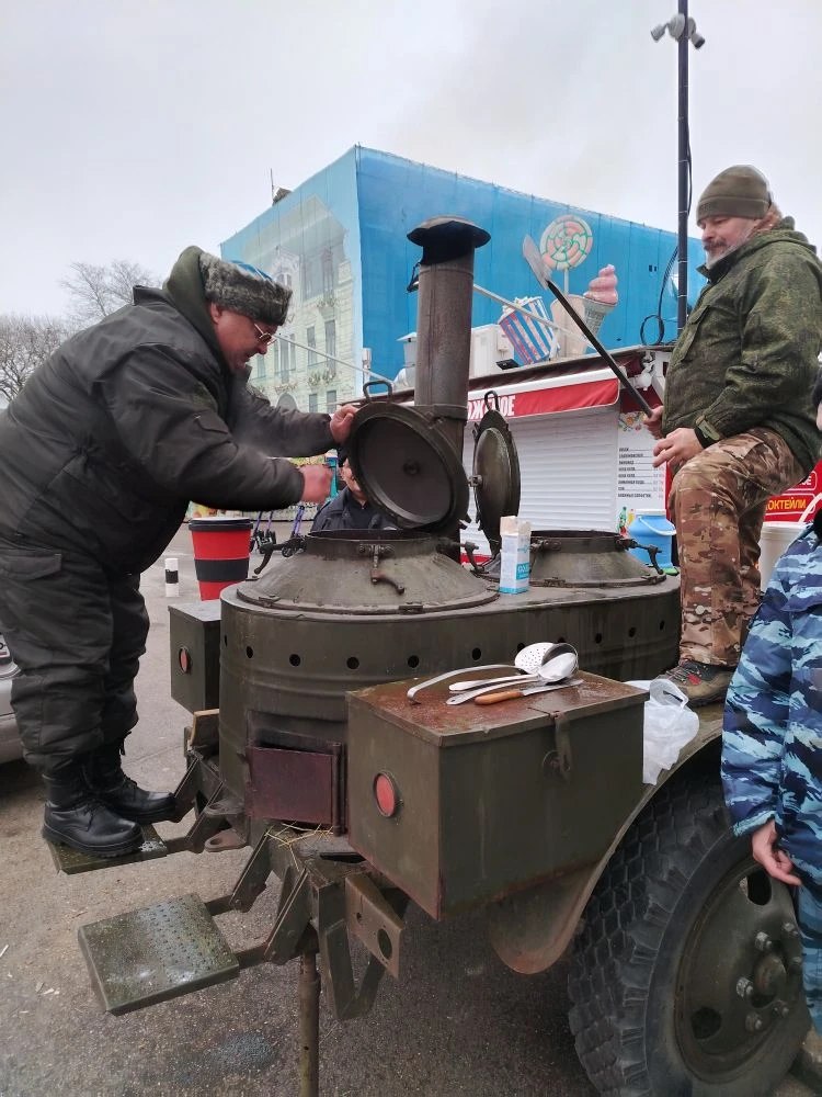 А в День Защитника Отечества они порадовали горожан вкуснейшей солдатской кашей, накормив свыше 1000 человек! Это не просто еда, а настоящее проявление поддержки и единства!