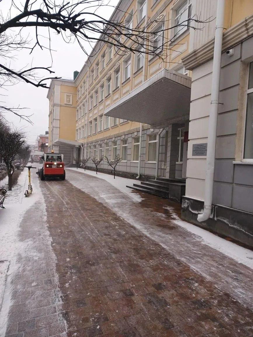 Специалисты обрабатывают от снега и наледи дороги и тротуары города. Ночью работали более 70 человек и 40 единиц техники.