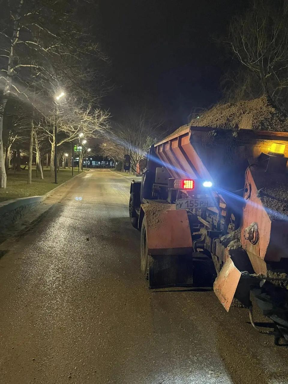 Сейчас на улицах — около 80 специалистов и почти 60 машин. На обработку дорог израсходовали более 300 тонн песка и соли.